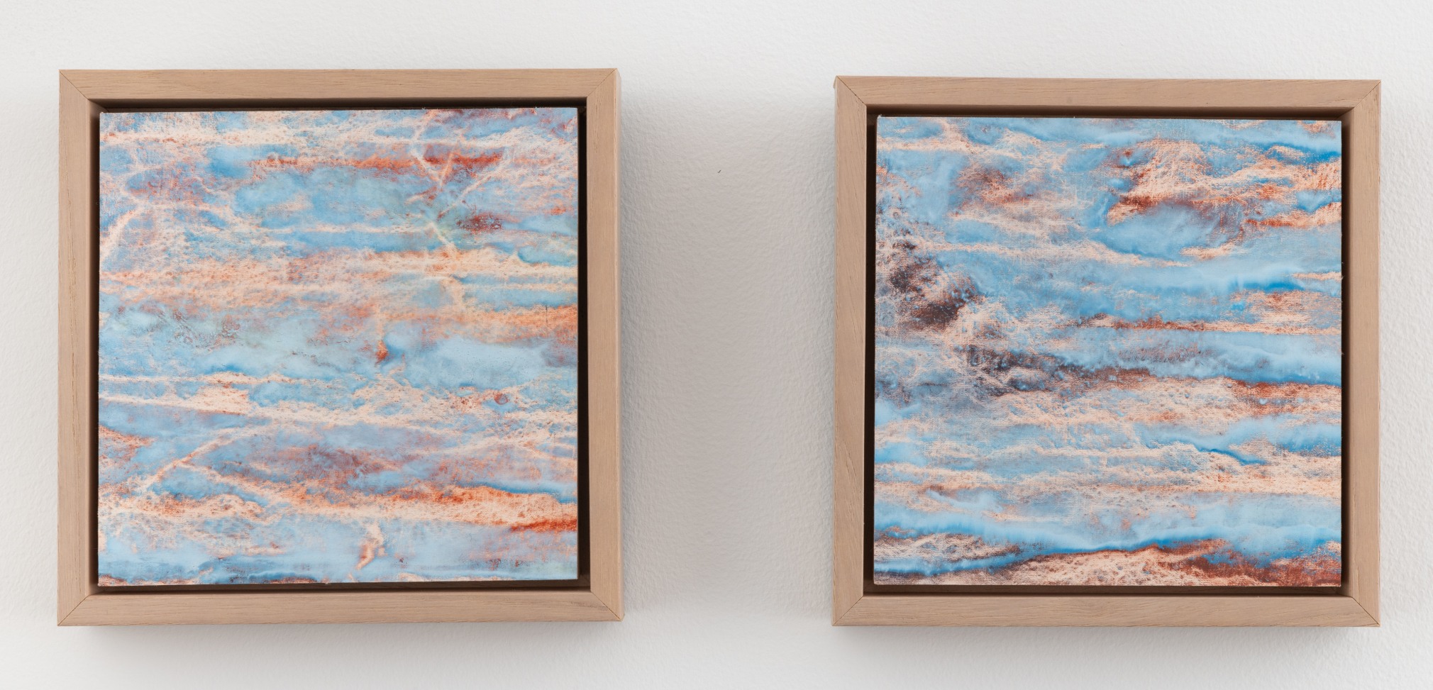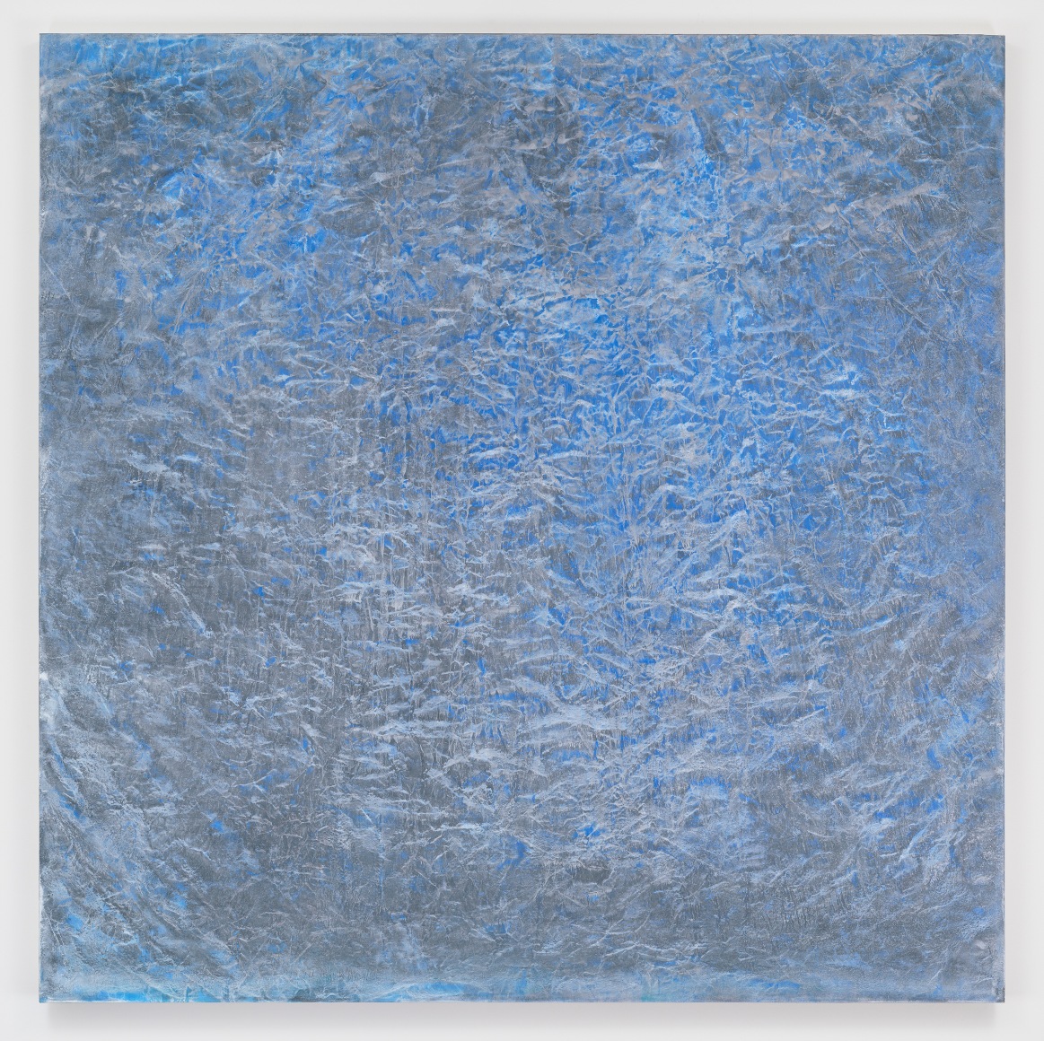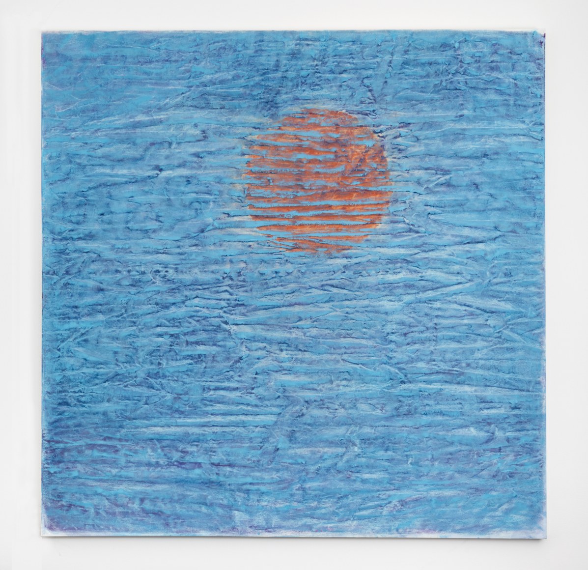 Colombet’s meditative paintings reference the natural world by taking the abstract energy, topography, and sensibility of landscapes as a source of inspiration. Nature always had a calming affect upon Colombet. One that she wanted to communicate by unconventional connections. Her singular style of painting the natural elements begins on un-stretched linen where she marks a canvas with pen or paint creating an imperceptible relief that when in contact with the brush leaves organic traces of pigment; the canvas is manipulated by folding or indenting the surface. A fluid medium of mineral spirit combined with Safflower oil and alkyd are applied before the canvas becomes flat again. The proportion of the medium varies with every pigment and she uses smooth varnishing brushes made of goat hair to avoid brush marks. The effect is the creation of formations, fractals, particles and patterns of chaos. The illusion of this topography in Colombet’s paintings gives the impression of a gestural and impasto surface, but the work is totally flat and smooth.